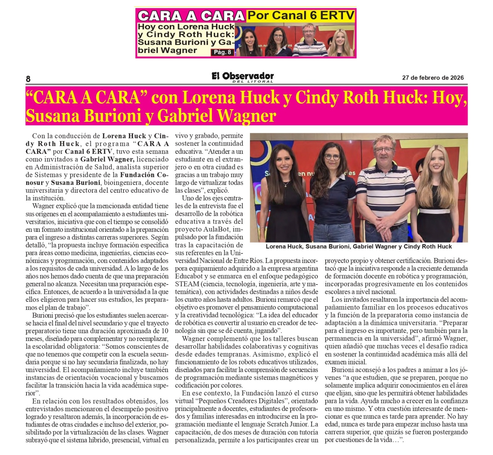 Entrevista en Cara a Cara Tv publicado por Cono Sur Categorías NOTICIAS Fecha 27 febrero, 2026 Comentarios 0 Comentarios Compartir: Cono Sur Publicación anterior Inscripciones abiertas 27 febrero, 2026 También te puede interesar Inscripciones abiertas 2 febrero, 2026 27 enero, 2026 Curso Intensivo para ingreso a Medicina UAP y UNL 22 enero, 2026